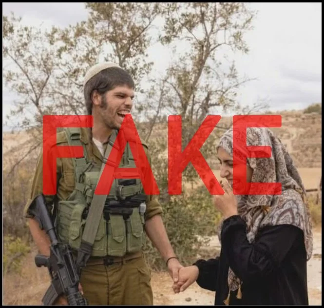 In questi giorni sta girando una immagine modificata con l’intelligenza artificiale che mostra una realtà falsa in cui il colono israeliano e la donna palestinese - di cui si è parlato molto nei giorni scorsi e di cui ho scritto nel post “L’Abuso” - sorridono e si danno la mano, in un atteggiamento complice che lascerebbe pensare che l’abuso dell’uomo sulla donna, visibile nella potente fotografia del fotogiornalista Pietro Masturzo, apparsa sulla copertina del settimanale L’Espresso, possa essere in realtà una messa in scena.