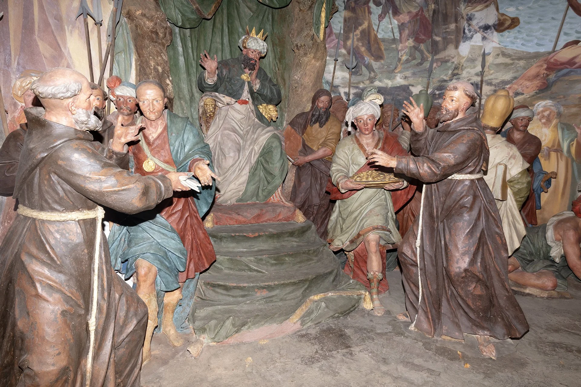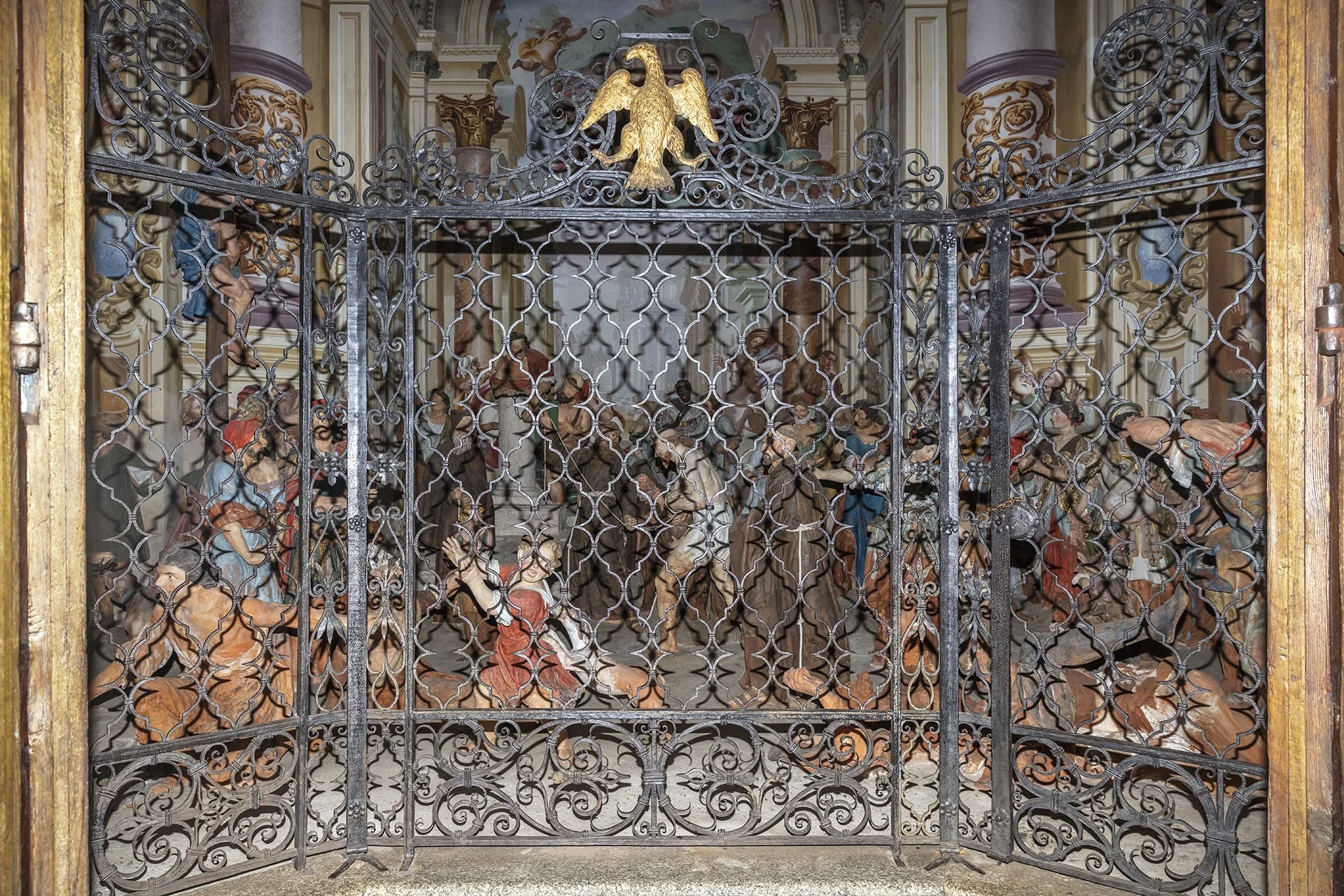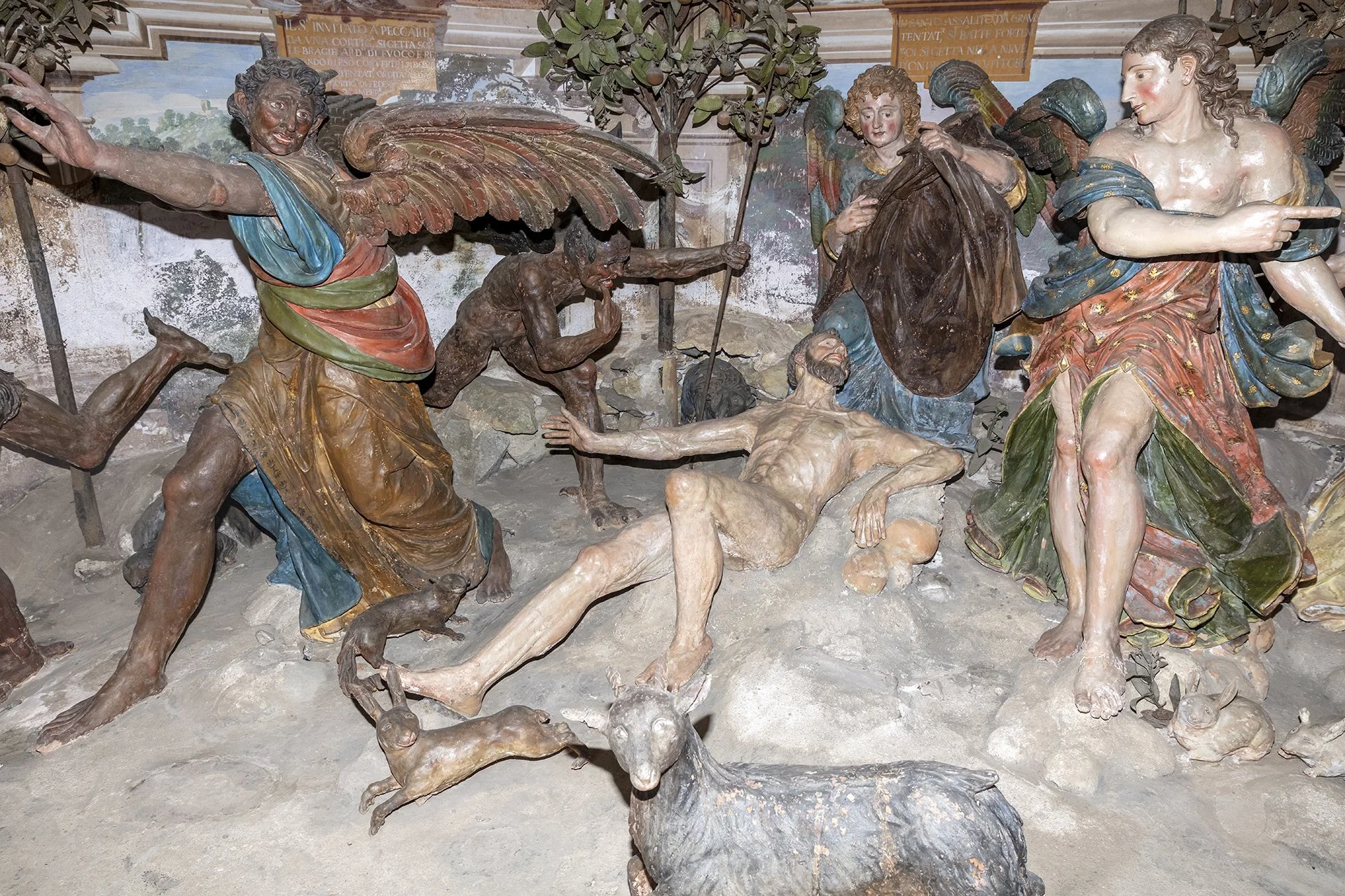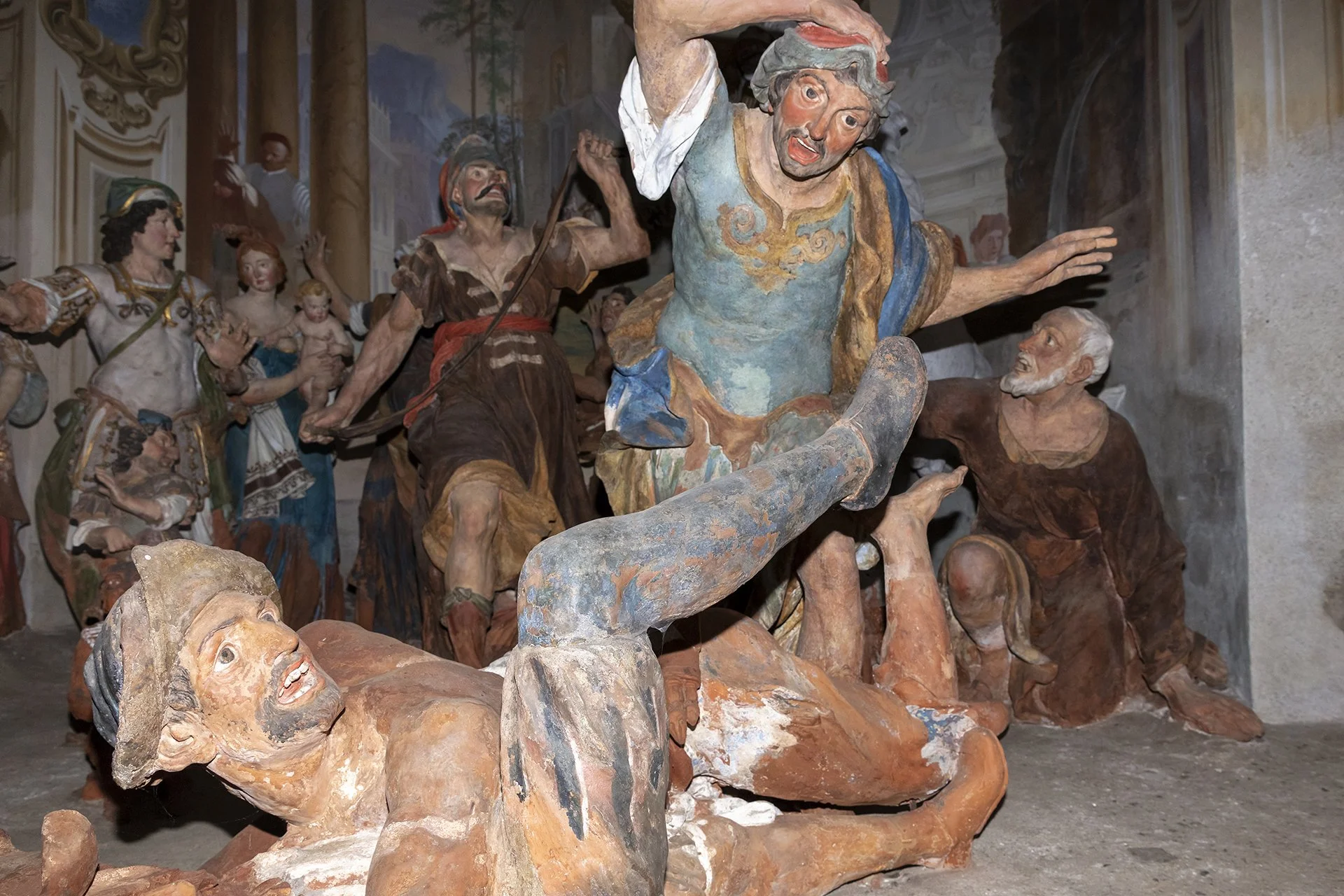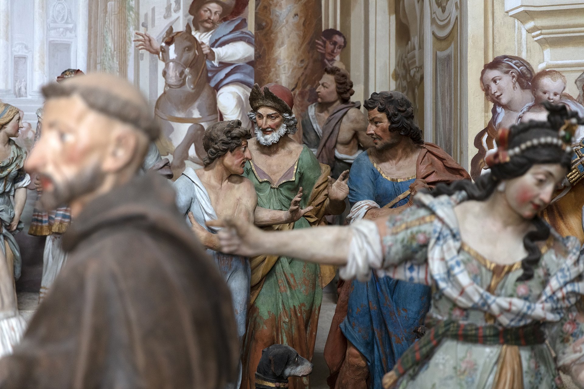 Unlike the other Sacred Mountains, the one in Orta is the only one entirely dedicated to a single saint. The 20 chapels that compose it depict episodes from the life and miracles of Saint Francis of Assisi, who is seen as embodying Christ and living out his mystical and charitable experience. In keeping with the idea common to all the Sacred Mountains—to offer a theatrical representation of events—inside the chapels there are groups of life-sized painted terracotta statues (376 in total), along with numerous frescoes depicting episodes from the saint’s life that serve as a backdrop to the sculptural groups.